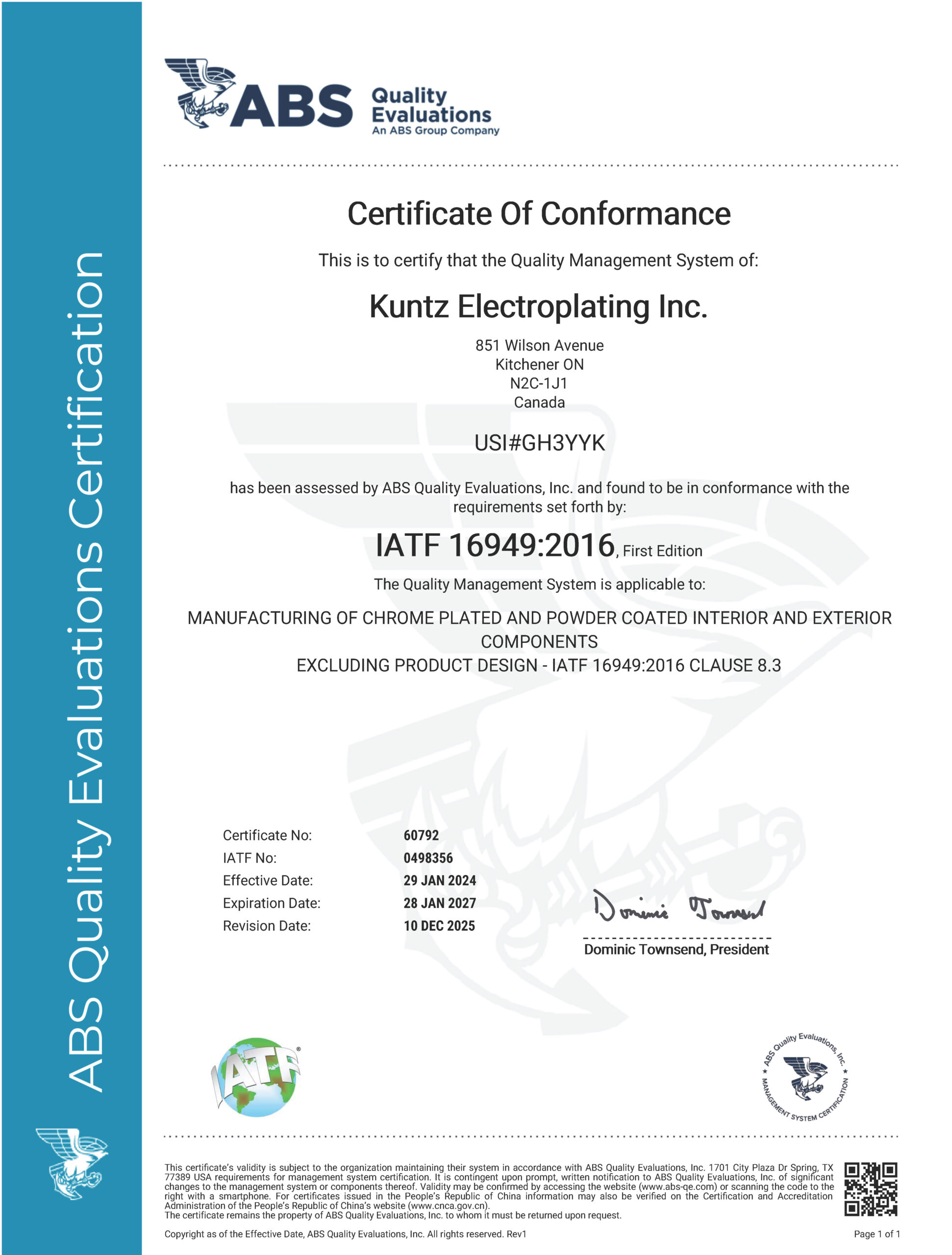 KEI is an IATF 16949, ISO 9001:2015 and ISO-14001 registered company.